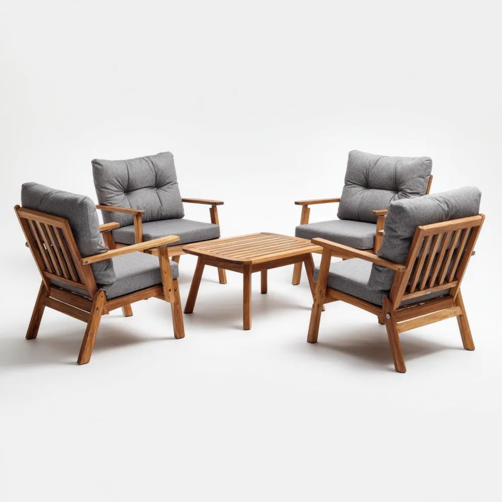 Set di divani da esterno in legno con cuscini Grigi 75x80x85 cm e tavolo 60x60x35 cm - Design moderno