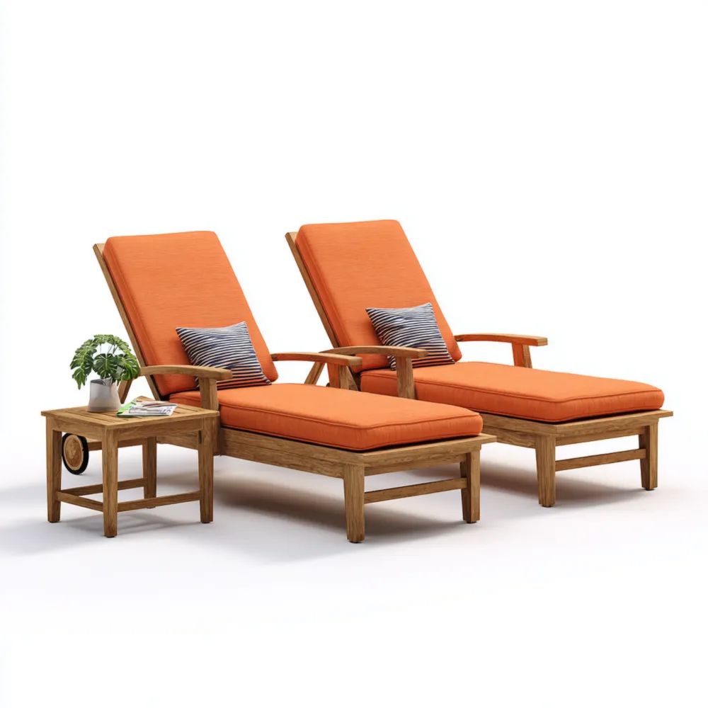 Set Lettini prendisole in legno con cuscini 195x65x35 cm - Arancione - Design moderno