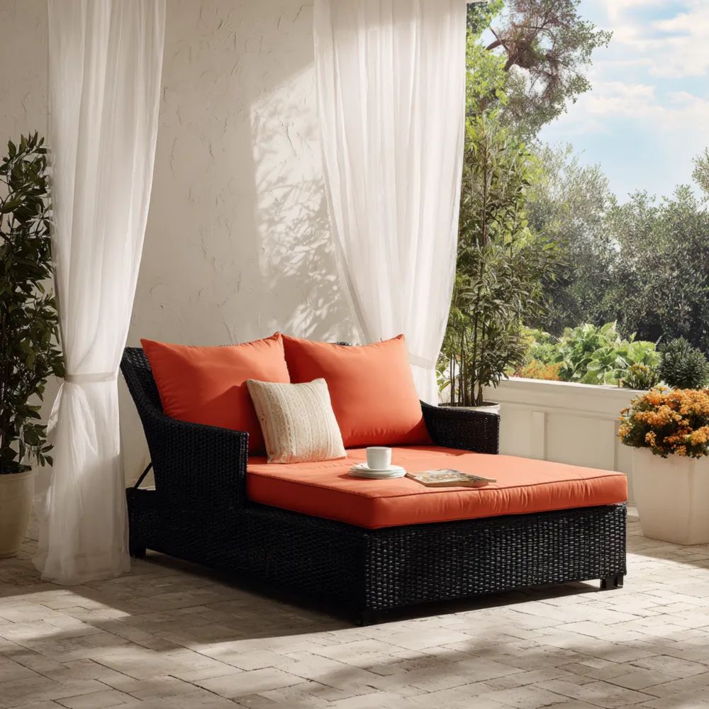 Lettino prendisole in rattan sintetico 200x150x90 cm - Arancione