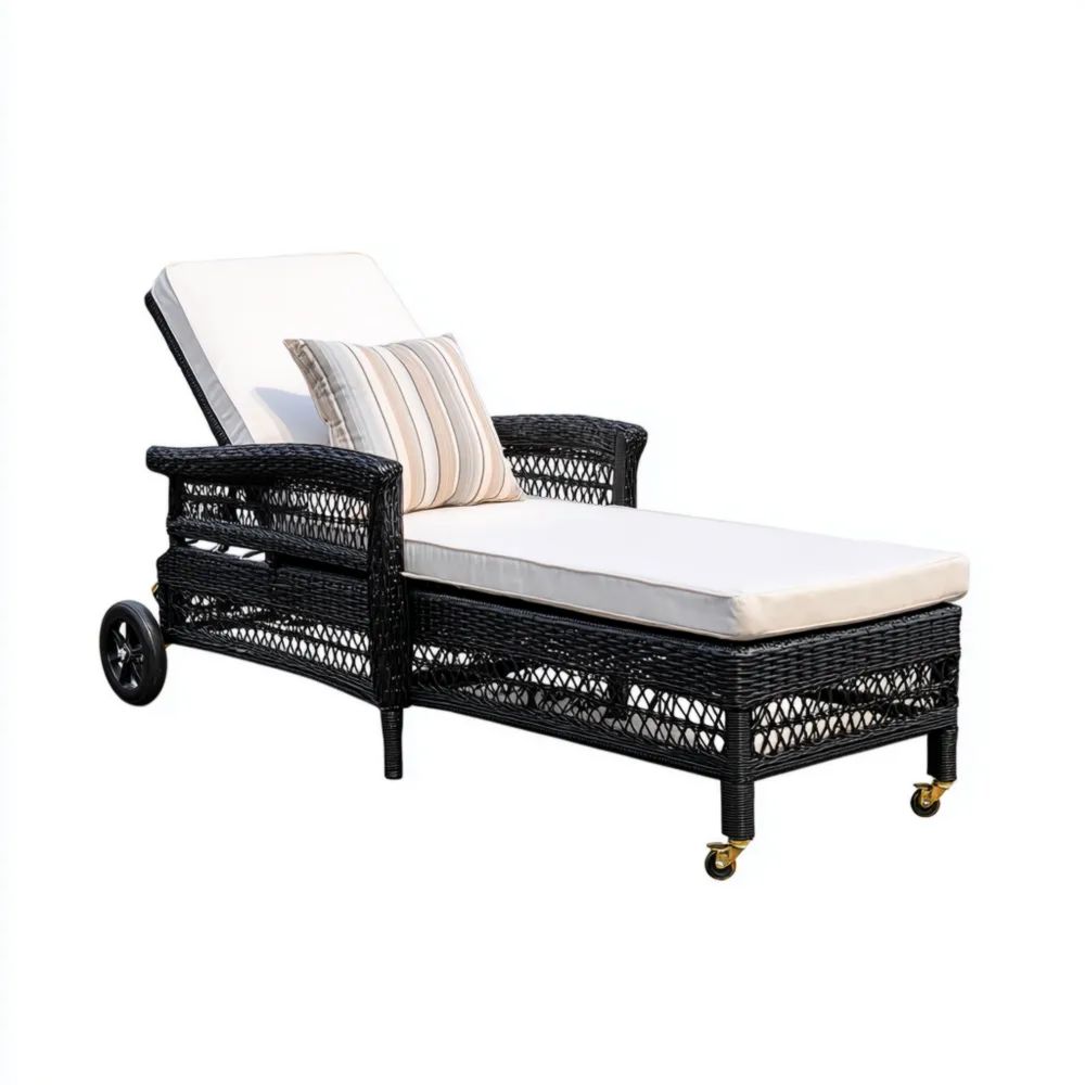 Lettino prendisole in rattan sintetico 200x75x35 cm – Nero/Beige – Design moderno