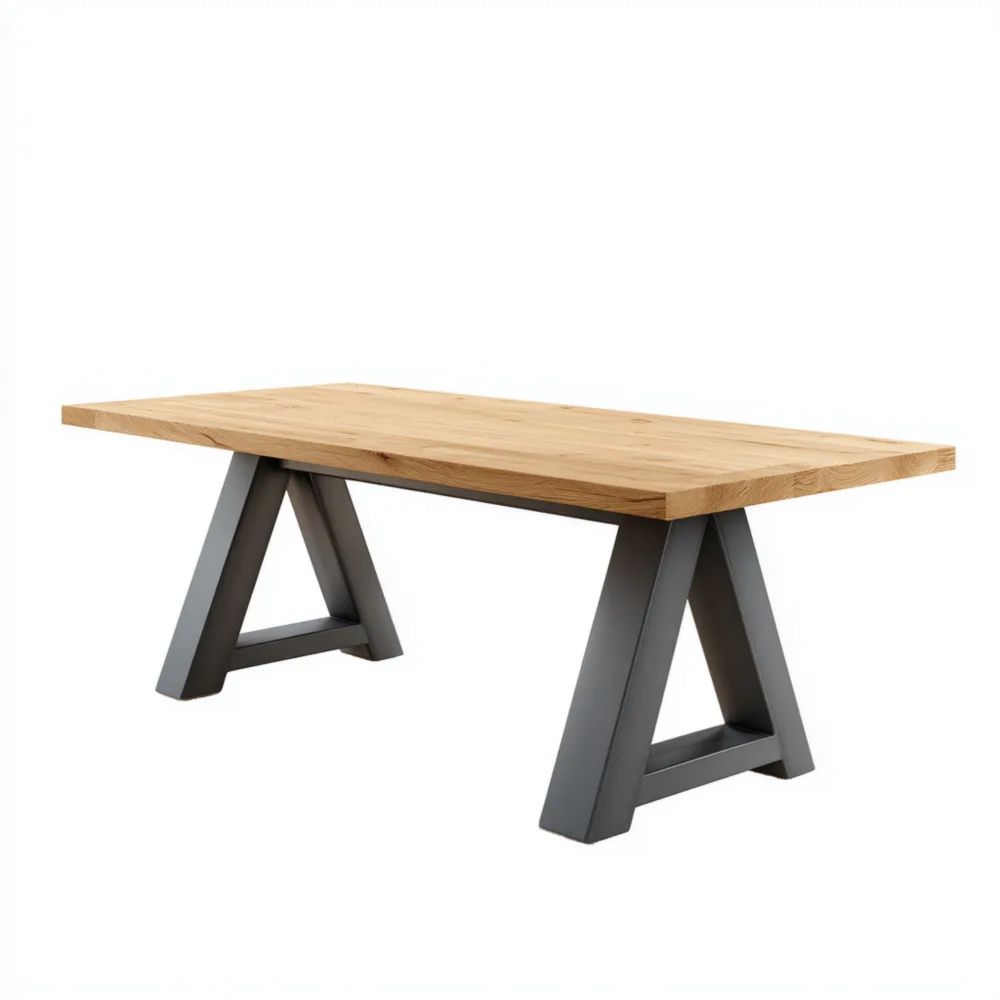 Tavolo da pranzo in legno massiccio 180x90x75 cm - Rovere e Metallo - Design Industriale