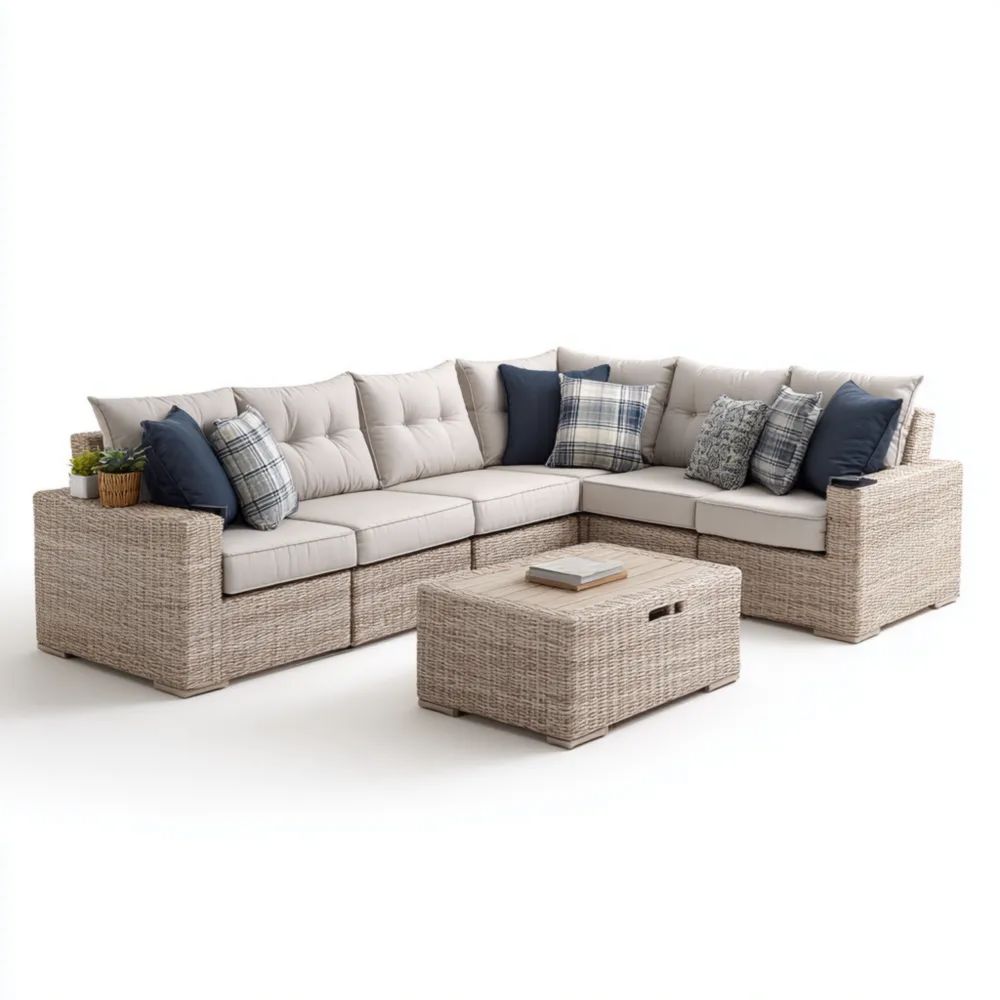 Consigli per la manutenzionePer mantenere il tuo set di divani in ottime condizioni, pulisci regolarmente il rattan con un panno umido e proteggi i cuscini dalla pioggia per preservarne la qualità.